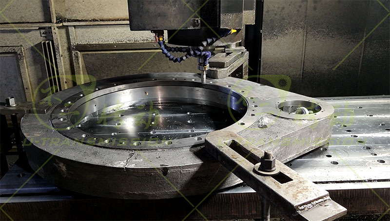 重載加強(qiáng)型0800齒輪式回轉(zhuǎn)驅(qū)動(dòng)應(yīng)用在工程機(jī)械上,針對(duì)客戶的工況,不二傳動(dòng)工程師在常規(guī)重載驅(qū)動(dòng)的基礎(chǔ)上進(jìn)行改進(jìn),優(yōu)化設(shè)計(jì),對(duì)關(guān)鍵部件進(jìn)行加強(qiáng),對(duì)可能出現(xiàn)問題的部件進(jìn)行高可靠性設(shè)計(jì),確保驅(qū)動(dòng)在使用中穩(wěn)定可靠?;剞D(zhuǎn)驅(qū)動(dòng)的齒圈和齒輪采用表面淬火,淬火工藝采用單齒淬火,保證齒表面堅(jiān)硬耐磨,承載高,齒芯部柔軟耐沖擊,在大扭矩和沖擊載荷的情況下保證齒的可靠性。