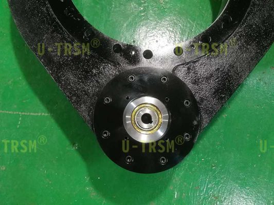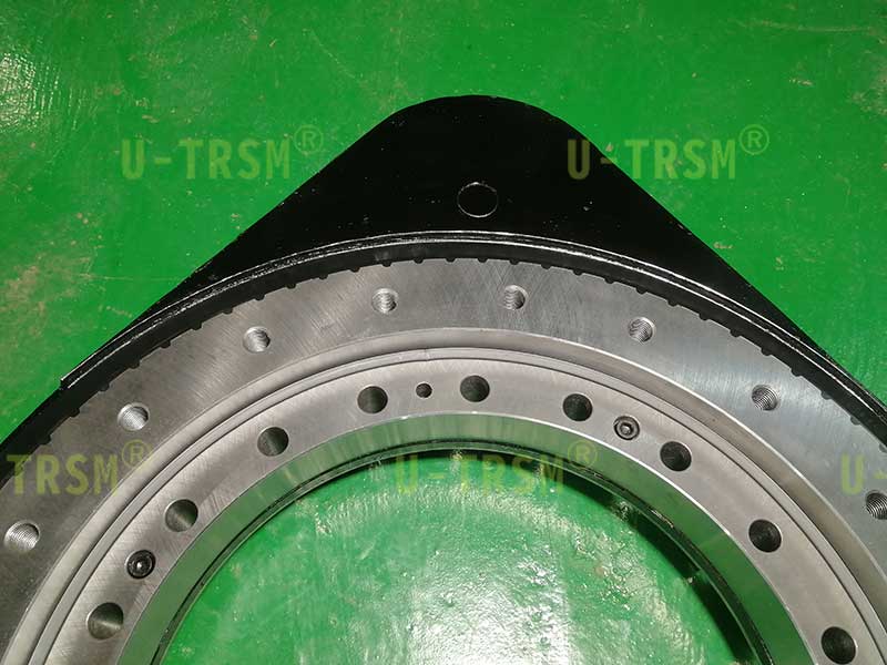 重載系列的回轉(zhuǎn)驅(qū)動(dòng)回轉(zhuǎn)支承加厚設(shè)計(jì),鋼球選用更大規(guī)格的,殼體加厚設(shè)計(jì),法蘭定位銷加強(qiáng)設(shè)計(jì),這樣的設(shè)計(jì)可以顯著提高回轉(zhuǎn)驅(qū)動(dòng)的傾覆力矩,齒輪和齒圈采用模數(shù)8的齒,進(jìn)行齒淬火增加齒面的耐磨性和耐沖擊性,適合客戶頻繁啟停的工況,客戶的電機(jī)法蘭特殊,如果想要直接連接只能通過給回轉(zhuǎn)驅(qū)動(dòng)的法蘭預(yù)埋螺栓的方式實(shí)現(xiàn),我們采用了非??煽康念A(yù)埋螺栓的方法,既能保證客戶使用的可靠性,又能非常方便的拆卸更換。
