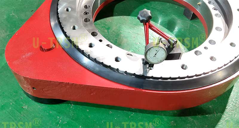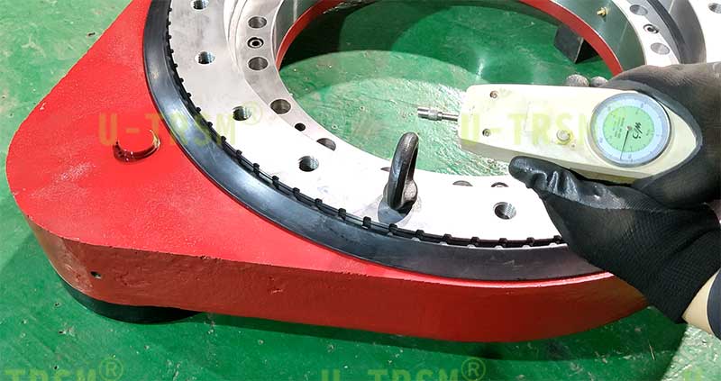 不二傳動(dòng)制定工藝后嚴(yán)格把控質(zhì)量,成品檢測(cè)結(jié)果是游隙≤0,端跳≤0.03mm,齒間隙≤0.10mm,回轉(zhuǎn)驅(qū)動(dòng)旋轉(zhuǎn)靈活,無(wú)異響。