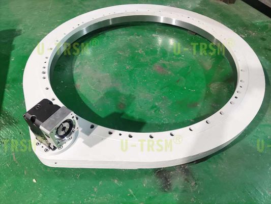其實(shí)在設(shè)備設(shè)計(jì)中有很多類似的需求,被轉(zhuǎn)工件重量很輕,但是尺寸比較大,客戶還要從回轉(zhuǎn)驅(qū)動(dòng)的內(nèi)徑穿過(guò)尺寸較大的部件。這就要求齒輪式回轉(zhuǎn)驅(qū)動(dòng)做成輕薄型的,首先要考慮回轉(zhuǎn)驅(qū)動(dòng)的強(qiáng)度,不能設(shè)計(jì)滿足不了客戶載荷要求的過(guò)于輕薄的回轉(zhuǎn)驅(qū)動(dòng)。