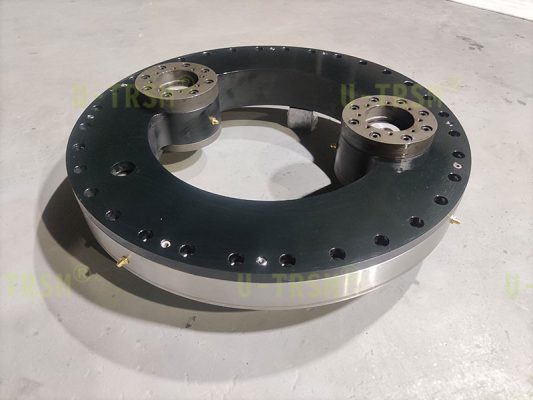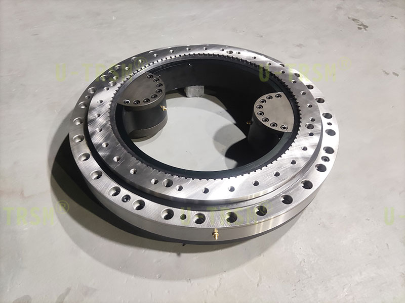 S-I-I-500 精密雙齒輪磨齒內(nèi)齒回轉(zhuǎn)驅(qū)動應用在特殊設備上,回轉(zhuǎn)驅(qū)動采用零游隙設計,齒淬火后磨齒,雙齒輪同時驅(qū)動回轉(zhuǎn)驅(qū)動內(nèi)齒圈。雙齒輪傳動跟單齒輪傳動相比具有輸出扭矩大,傳動精度高,傳動平穩(wěn),雙齒輪減小齒間隙等優(yōu)點。
