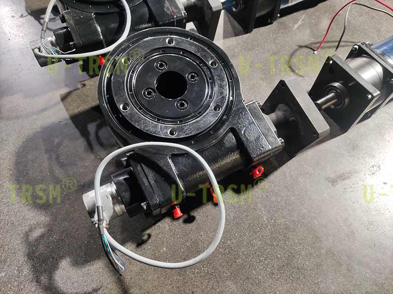 SE5回轉(zhuǎn)驅(qū)動帶編碼器配套減速電機應(yīng)用在輕型自動化設(shè)備上,轉(zhuǎn)速低,啟動停止頻繁,需要實時知道驅(qū)動的位置。根據(jù)客戶要求我們推薦了這款SE5回轉(zhuǎn)驅(qū)動,體積小減速比大,結(jié)構(gòu)緊湊,回轉(zhuǎn)驅(qū)動非輸入端加裝編碼器,用來記錄蝸桿旋轉(zhuǎn)的圈數(shù),用來計算轉(zhuǎn)臺的實時位置,跟實際需要的轉(zhuǎn)臺位置信息進行比對,用來糾正偏差。