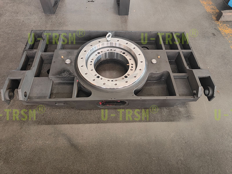 經(jīng)過與客戶的不斷溝通,反復(fù)進行3D設(shè)計模擬實驗,不二傳動給客戶研發(fā)了此款回轉(zhuǎn)驅(qū)動。雙齒輪的設(shè)計,一個為動力齒輪,另一個齒輪從動配合編碼器精準反饋旋轉(zhuǎn)角度。此款回轉(zhuǎn)驅(qū)動齒輪達到6級,使得回程間隙極大的減小,達到客戶的使用要求,并且集成于底座,集成化的設(shè)計在加工方面可以使得回轉(zhuǎn)驅(qū)動整體更為方便簡潔。