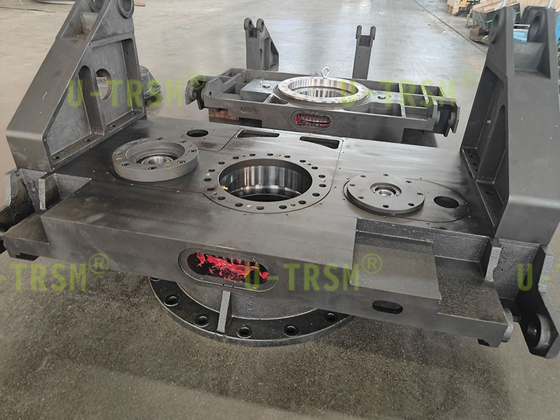 此款回轉(zhuǎn)驅(qū)動應(yīng)用在自動化旋轉(zhuǎn)平臺設(shè)備中,兩側(cè)支臂孔與平臺孔成角度,用于連接舉升設(shè)備使用,此驅(qū)動與平臺集成一體化設(shè)計,節(jié)省設(shè)備安裝空間,避免過多的安裝配合造成的誤差累計增加。
